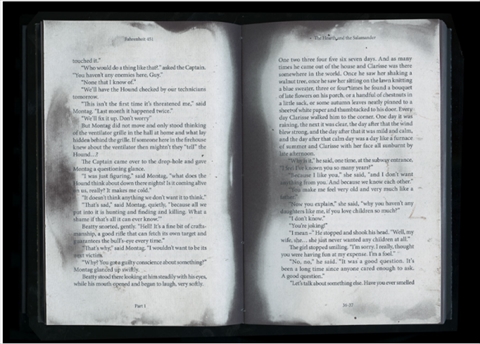 同作は本が禁じられた架空の社会を描いた作品で、タイトルは紙が燃え始める温度である華氏451度にちなんでいます。そのテーマを変わった形で取り入れた特殊版『華氏451度』は、初めはページが真っ黒。火であぶる、手で暖めるなど熱を加えると、黒いインクが消えて文字が見えるようになり、冷めるとまた黒くなります。