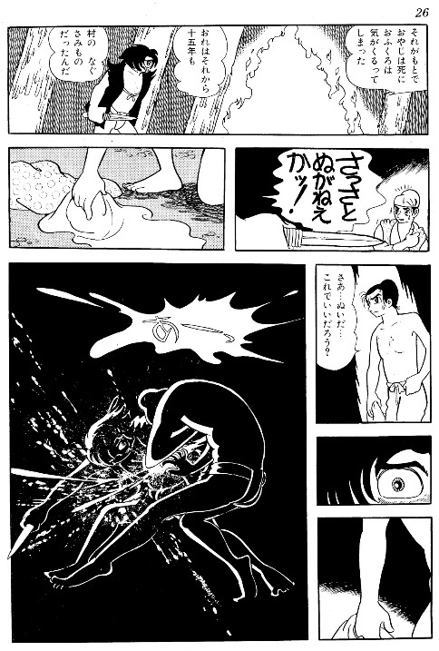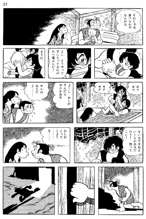 この後、我王は、ためらいもなく、こどもを殺してしまうのだ(5巻21ページ)(C)Tezuka Productions