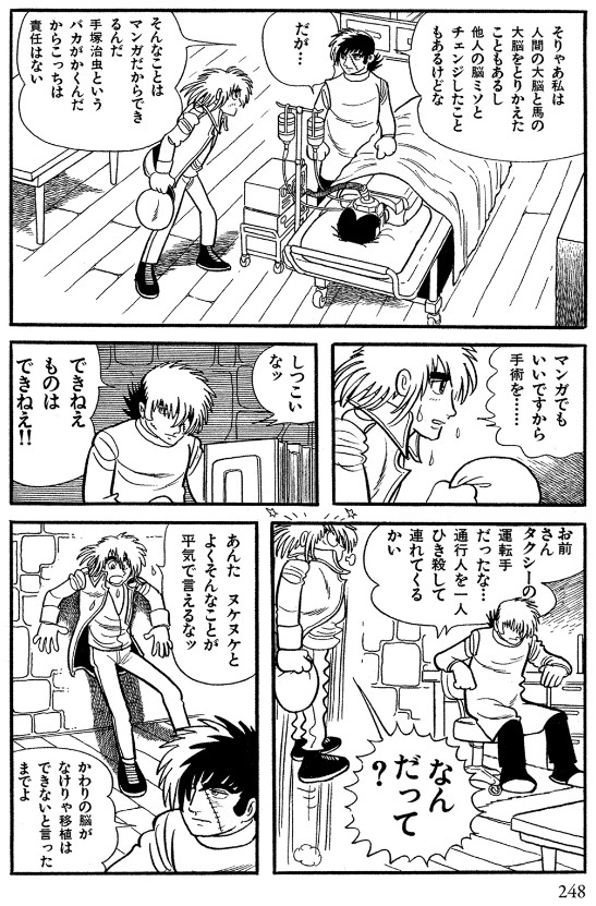「マンガだからできるんだ」とヌケヌケと言うブラック・ジャック(ミッドナイト・手塚治虫文庫全集1巻248ページ)(C)Tezuka Productions
