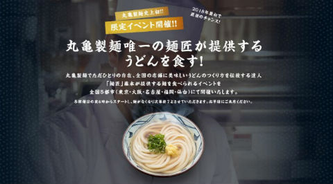 また丸亀製麺にただ一人の、全国の店舗にうどんの作り方を伝授する達人「麺匠」による麺を食べられるイベントも実施します。日程は下記の通り。