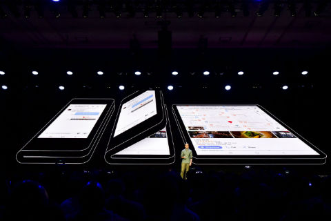 Samsungが折りたたみスマホを披露 開くとタブレットに