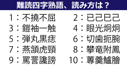 「已己巳己」「侃侃諤諤」「罵詈讒謗」って分かる? 読めたらスゴい難読四字熟語