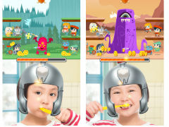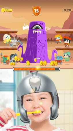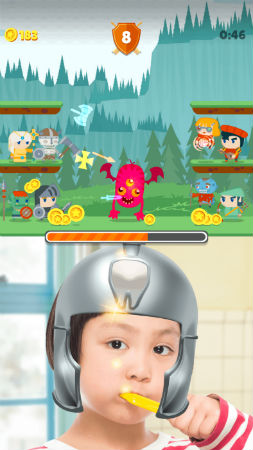 スマホの画面に向かって歯磨きすると、敵を攻撃――子どもが歯磨きを進んでやるようになったと評判のアプリについて取材しました。