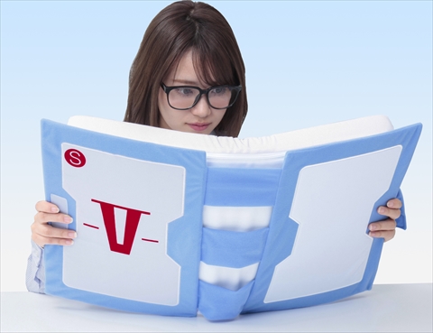 「V作戦マニュアル クッション」は本型で、閉じた状態では本物の本のように立てておくことができ、開くとおよそ縦37×横62×厚さ6センチのクッションになります。開いた状態のクッション部分は、図解マニュアルをイメージしたようなデザインで、“ガンダム”や戦闘機“コアファイター”が描かれています。発送は2019年3月を予定。