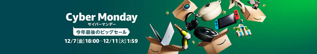 Amazonが毎年末に実施しているビッグセール「サイバーマンデー」が今年もやってきます。2018年のセール期間は12月7日18時から12月11日1時59分まで(80時間)。期間中はさまざまな商品が特別価格で販売されるほか、ここでしか買えない「Amazon限定商品」なども。セールに備えて、今のうちに目玉商品をチェックしておきましょう。