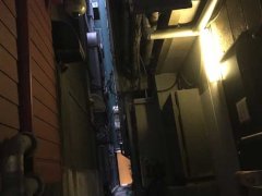 まだ明るい銀座の街を確認して、振り返るように建物の中へ続くような道を進みますが、途中で曲がって現れた自動ドアが開いた瞬間、急に世界が変わったような暗めの路地裏に。控えめな黄色いライトが照らすダクトや室外機など、今さっきまで見ていた銀座とは思えないほどヒンヤリとした雰囲気に驚きます。まさに“異世界への扉”……!