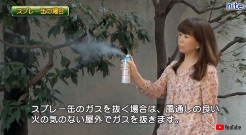 最近では処分の際に中身を空にしなくてもいい、またはスプレー缶も穴を開ける必要のない自治体が増えています。しかし中身が入ったままでも回収に応じる自治体はごく少数で「どうしても使い切れない場合」に限られるとのこと。「処分するときは自治体のルールを確認しましょう」と注意喚起しています。