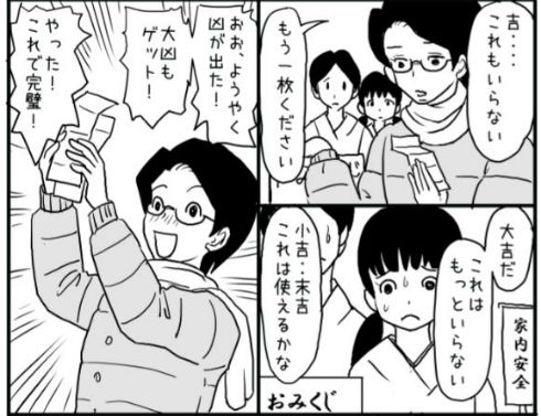 おみくじで大凶を引いて「やった!」と喜ぶ女の子、なぜ……? 優しい理由を描いた漫画に心がほっこり