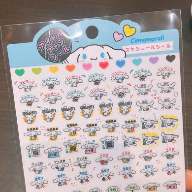 シナモロールをはじめ、サンリオのキャラクターたちがジャニオタ&ドルオタライフを見守ってくれるスケジュールシールが販売されており、昨年から人気になっています。シナモンといえば、YouTubeのジャニーズJr.チャンネルでコラボをしたこともあり、特に相性がよさそう。