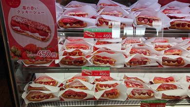 他にも横濱ハーバーで知られる「ありあけ」の「苺の赤いクッキーシュー」(450円)や、バーム串の「伊豆いちごfactory」もすごい人だかりができていました。食べたい方は早めに並んだほうがよさそうです。また、屋外で「いちご大福」(324円)を販売している浅草の老舗「浅草梅園」もすごい人だかりでした。梅園のいちご大福は食べたかった……!