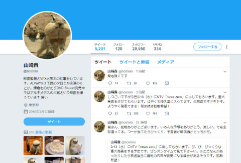 山崎監督のTwitter。出演前から重大発表を予告していた