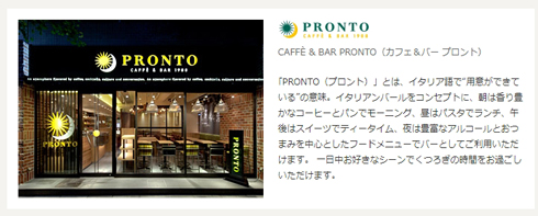 UCC、サントリーの共同出資により設立。カフェ&バーとして営業しており、店名「プロント(PRONTO)」は「用意ができている」を意味するイタリア語から。