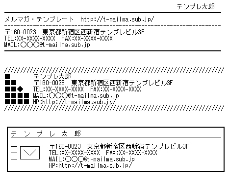罫線素片、他の記号を組み合わせた署名のテンプレ。自作するの意外と難しいんですよねえ……(画像はWebサイト「メルマガ・テンプレート」より)