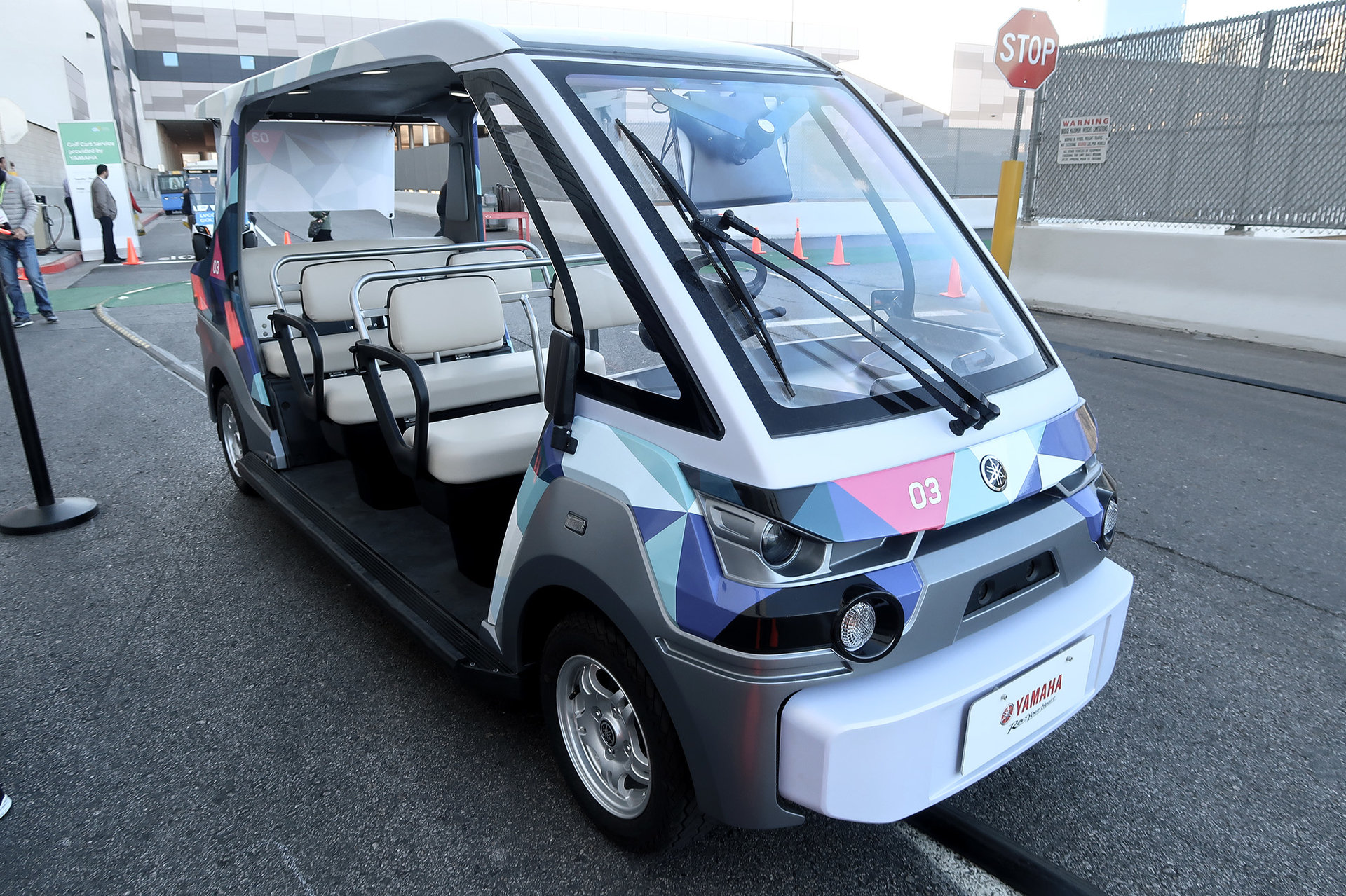 CES 2019の会場で走行デモを行ったヤマハの自動運転カート「Public Personal Mobility」。6人乗りのEVゴルフカートをベースに開発