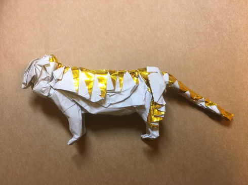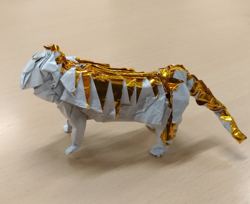 中村くんの創作作品「トラ」。ちなみに、これは折るのに約3時間かかったそうです