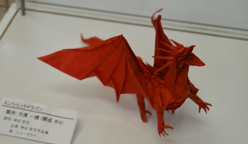 別ポーズの「エンシェントドラゴン」。制作は開成折り紙研究部部長・大澤くん