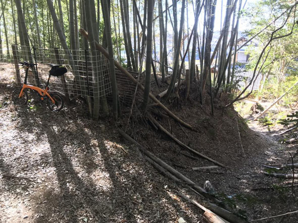 サイクリングというより、トレッキングかサバゲーでもしている気分。これ以上、奥には入れないので下山する。
