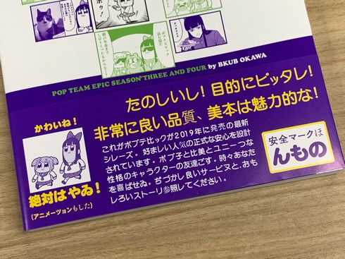 3月7日に発売された漫画『ポプテピピック』(大川ぶくぶ)の新刊の帯が、海外製品の日本語の説明書でよく見掛ける“ガバガバな日本語”風に書かれており、斬新な告知方法だとしてTwitterで多くの人の笑いを誘っています。