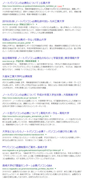 Googleなどの検索サービスで「PC 必携」のキーワードで検索してみると、各大学による公開資料が大量に出てきます。