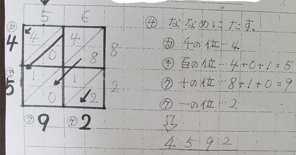 何その計算方法!? 「ノートのマス目を九九で埋めて足し算するだけ」の筆算でケアレスミスが減らせるかも