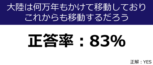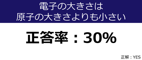 「地球の中心部は高温?」「「電子は原子より大きい?」など全11問。2001年時点の平均正答率は54%。