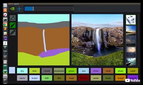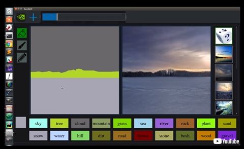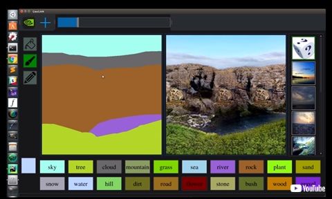グラフィックスチップメーカーNVIDIAの研究部門が、ディープラーニングを活用してラフスケッチを写実的な風景にする技術「GauGAN」を披露しました