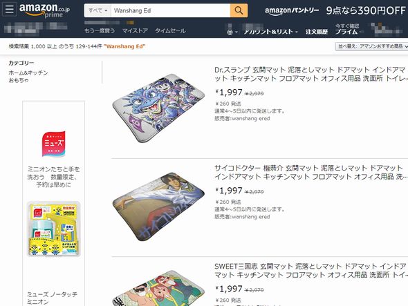漫画キャラを無許可で使った「玄関マット」がAmazonに大量出品 漫画家が「購入しないで」と呼び掛け