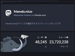 friends.nicoは2017年4月に開始し、現在のユーザー数は約4万8000人、総トゥート数は2300万以上となるなど、国内の大手インスタンスとして支持を集めていました。