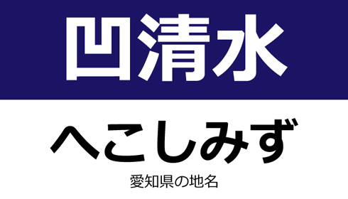 A:へこしみず(愛知県知多郡の地名。ちなみに「凸清水/でこしみず」もある)