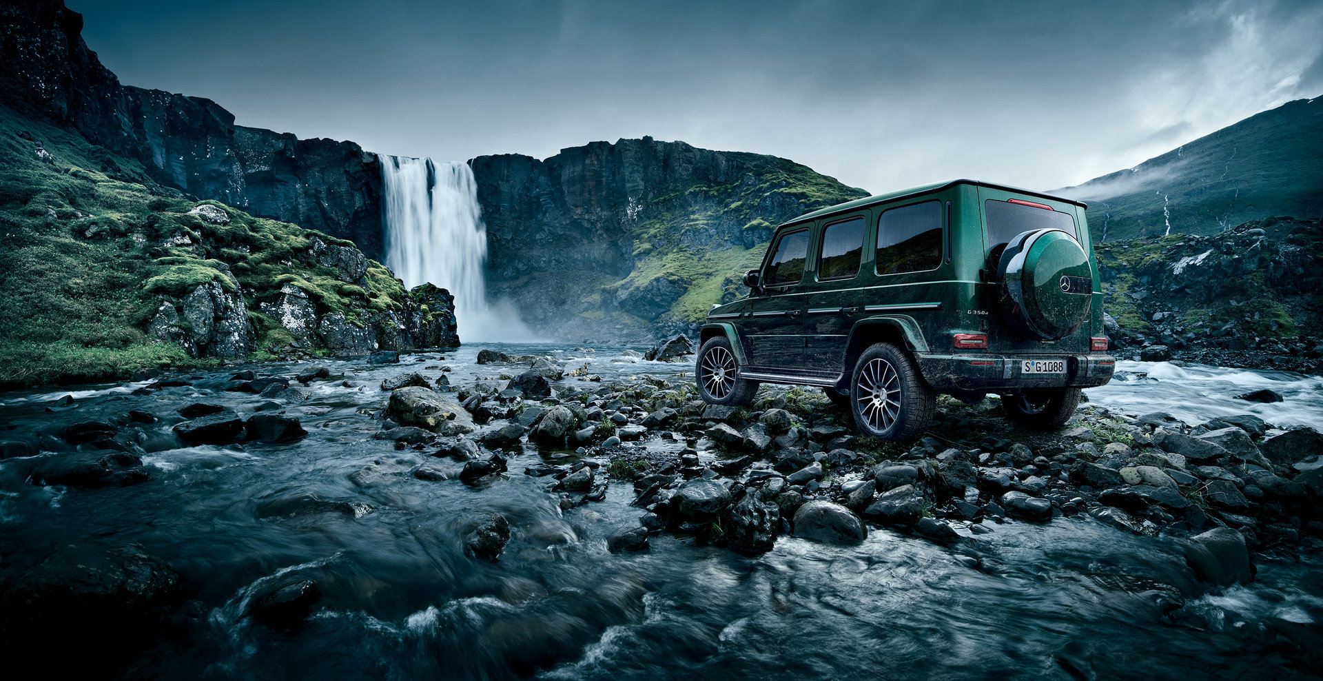 Gクラスは、タフな軍用車をルーツとする同社乗用車の最上位SUV(スポーツタイプ多目的車/クロスカントリービークル)。1979年の誕生以来、ガツンと箱形で直線基調のデザインが潔い骨太スタイリングと堅牢なボディー、高い走破性能と質感を両立した高級車です。