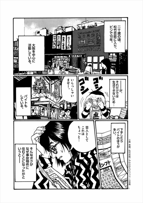 同作は、「事故物件住みます芸人」の松原タニシさんの体験を漫画家の奥香織さんが漫画化したもの。松原さんが事故物件に住むことになるきっかけから、実際に住んで体験した出来事を描いています。