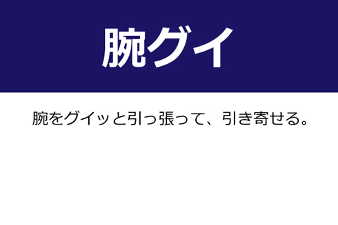 A:腕をグイッと引っ張って、引き寄せる。