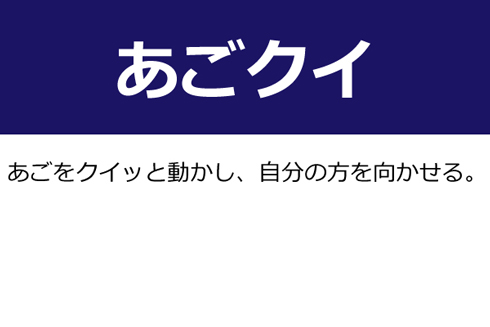 A:あごを"クイ"ッと動かし、自分の方を向かせる。