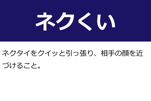 A:ネクタイをクイッと引っ張り、相手の顔を近づけること。