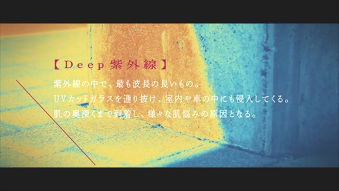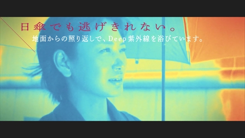 そして、サーモグラフィーのような映像は温度ではなくDeep紫外線の強さを可視化したもので、富士フイルムの独自研究により世界で初めてDeep紫外線を映すことに成功した特殊なカメラで撮影されたものです。さすが写真フィルムメーカー。