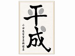 「平成」と大きく毛筆で書かれたパネルに、「平」の二・三画目と、「成」の右上の点、3つに顔ハメ用の穴が空いているもの。最大3人まで同時に、文字通り平成の一部となって記念撮影することができます。改元に合わせた記念撮影スポットは各所で登場しているでしょうが、「平成」のこの3つの部分に顔をハメる、という発想はなかったような。