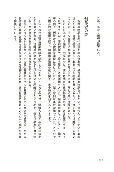 本書では、現代では忘れられた〈明治娯楽物語〉の規格外の魅力と、現代エンタメに与えた影響、そして、ウソを嫌い、リアルを愛する明治人が、一度は捨てたフィクションをフィクションとして楽しむ術(すべ)をどのようにして取り戻したのか、その一部始終を明らかにする。
