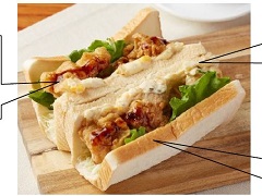 「グルメサンド」は食パン1枚をU字型に丸め、具材をサンドしたサンドイッチ。耳まで柔らかい専用の食パンを使用しており、具材の立体感もまして見た目にもボリューミーです。