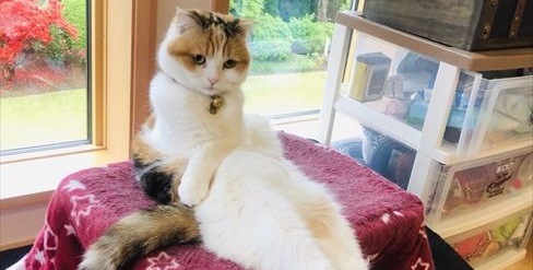 セクシーな座りポーズで出迎えてくれる猫ちゃんがTwitterで話題になっています