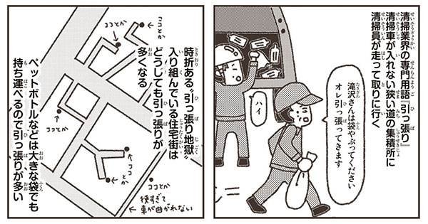 ―― 今回のエピソードでは「引っ張り(清掃車が近づけない集積所のゴミを走って取りに行く)」という業界用語が登場。これってよくあることなんですか?