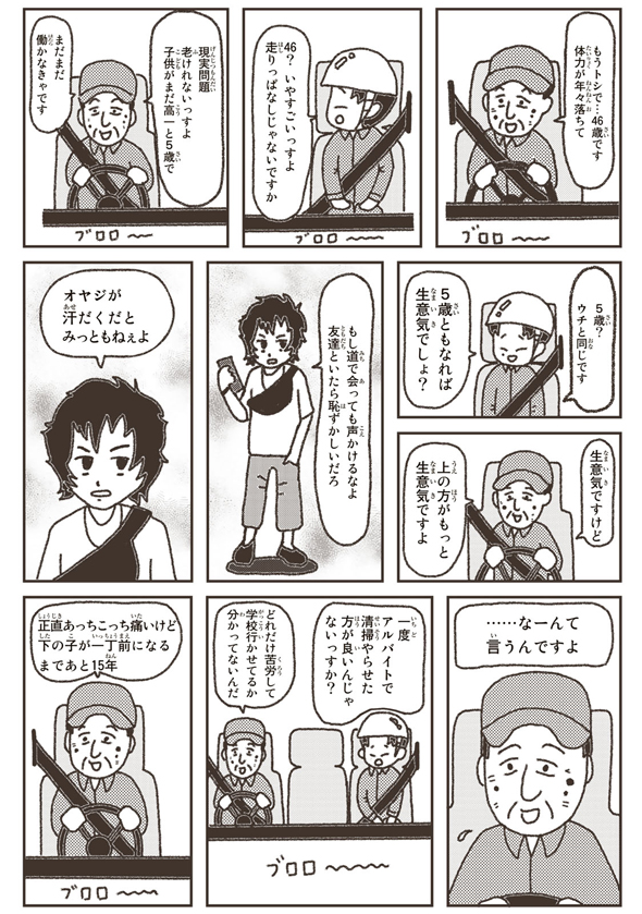 ―― 作中では、そんな引っ張りで住宅街を全力疾走する父親が、高1の息子に「オヤジが汗だくだとみっともない」といわれていますが……。