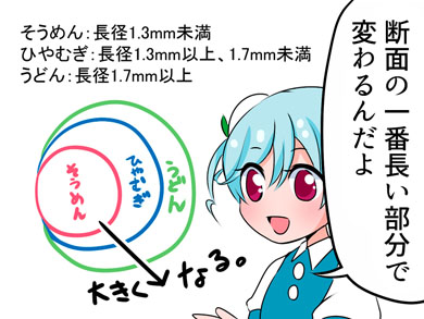 • ひやむぎ:長径1.3mm以上、1.7mm未満