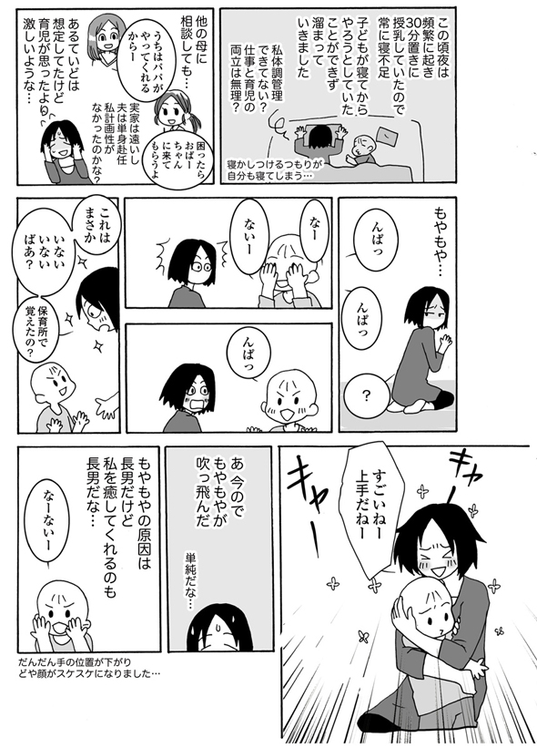 ネガティブなことほどよく覚えていていて……。だから漫画の内容も、辛かったり悩んだりした内容が多いんだと思います。今は子どもも成長して少しは余裕も出てきましたが、赤ちゃんのころはとにかく大変で、記憶がほとんどありません。
