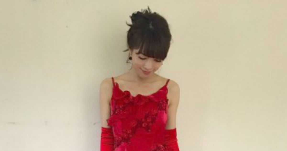 このドレス姿でマンホールを投げてた(画像は釈由美子オフィシャルブログから)