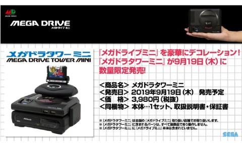 セガは、9月19日の「メガドライブミニ」発売に合わせて、あの「メガドラタワー」を実現できる「メガドラタワーミニ」を発売することを明らかにしました。価格は税別3980円。