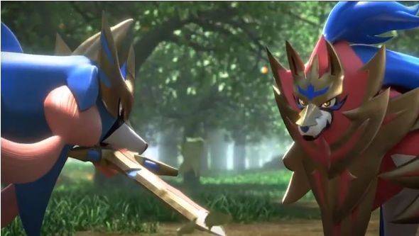 また、映像の最後には「ソード・シールド」に登場する伝説のポケモンを2体紹介。口で剣のようなものをくわえた「ザシアン」、体が盾のようなもので覆われた「ザマゼンタ」が対峙する様子が映されました。