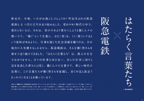 書籍『はたらく言葉たち』に掲出された様々な業界・世代の言葉の紹介を通じて、働く人々を応援したいという趣旨のもと、企画を行っておりましたが、一部誤解を招く不適切な言葉の掲出があったため、6月11日以降「ハタコトレイン」の運行を中止することといたしました。