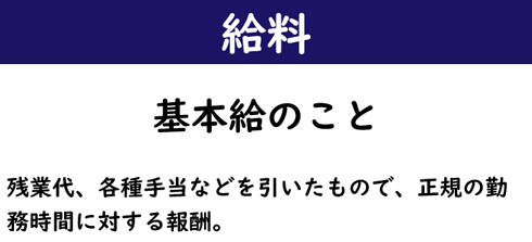 • 残業代、各種手当などを引いたもので、正規の勤務時間に対する報酬