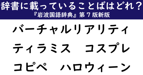 そんな国語辞典の個性の一端に、クイズを通して触れてみましょう。今回は、『岩波国語辞典』(通称『岩国』)第7版新版から出題。『岩国』に載っていることばはどれで、載っていないことばはどれか、考えてみてください。