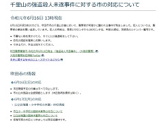 大阪府吹田市で警察官を包丁で襲い拳銃が強奪された事件に関連し、吹田市がサイト上に今後の対応について報告しています。